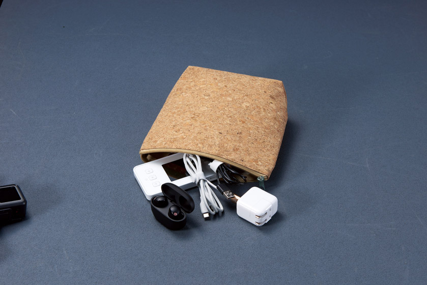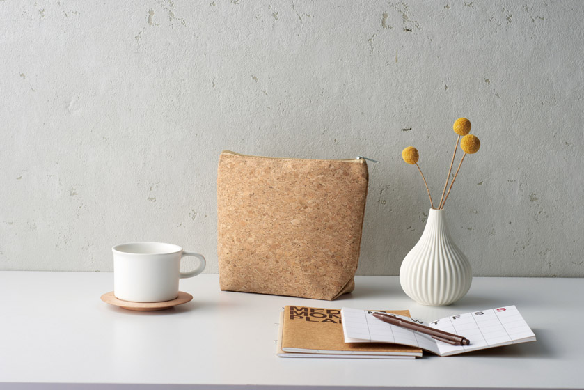 環境に優しいコルク素材で作られたポーチ。