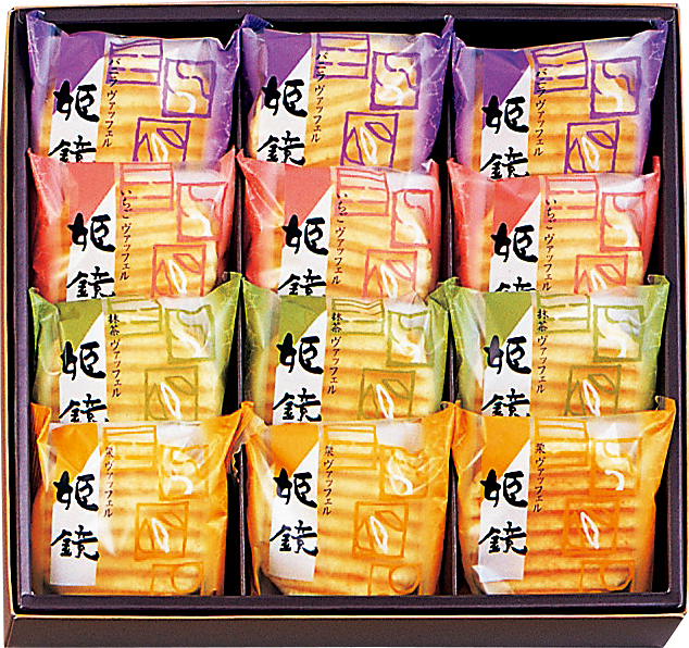 風味豊かに焼き上げた波型のクッキーに4種のクリームをサンドしたお菓子です。