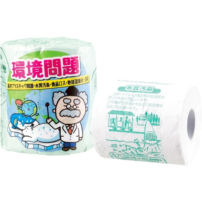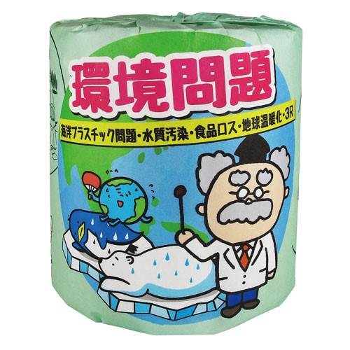 世界的な問題となっている海洋プラスチック問題をはじめ、社会問題化している食品ロスのほかに地球温暖化などの環境問題について学べるトイレトペーパーです。
