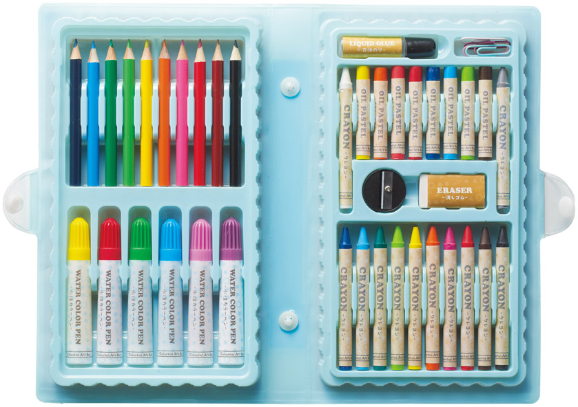 クレヨン12色・消しゴム・水性カラーペン6色・パステル8色
