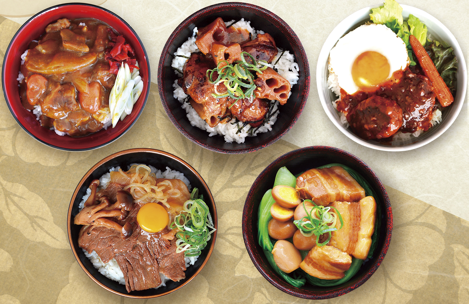 飛騨牛の牛すじを煮込んだカレーや、こんがり焼いた鶏の照り焼きなど素材にこだわったバラエティ豊かなどんぶり用の具ができました。