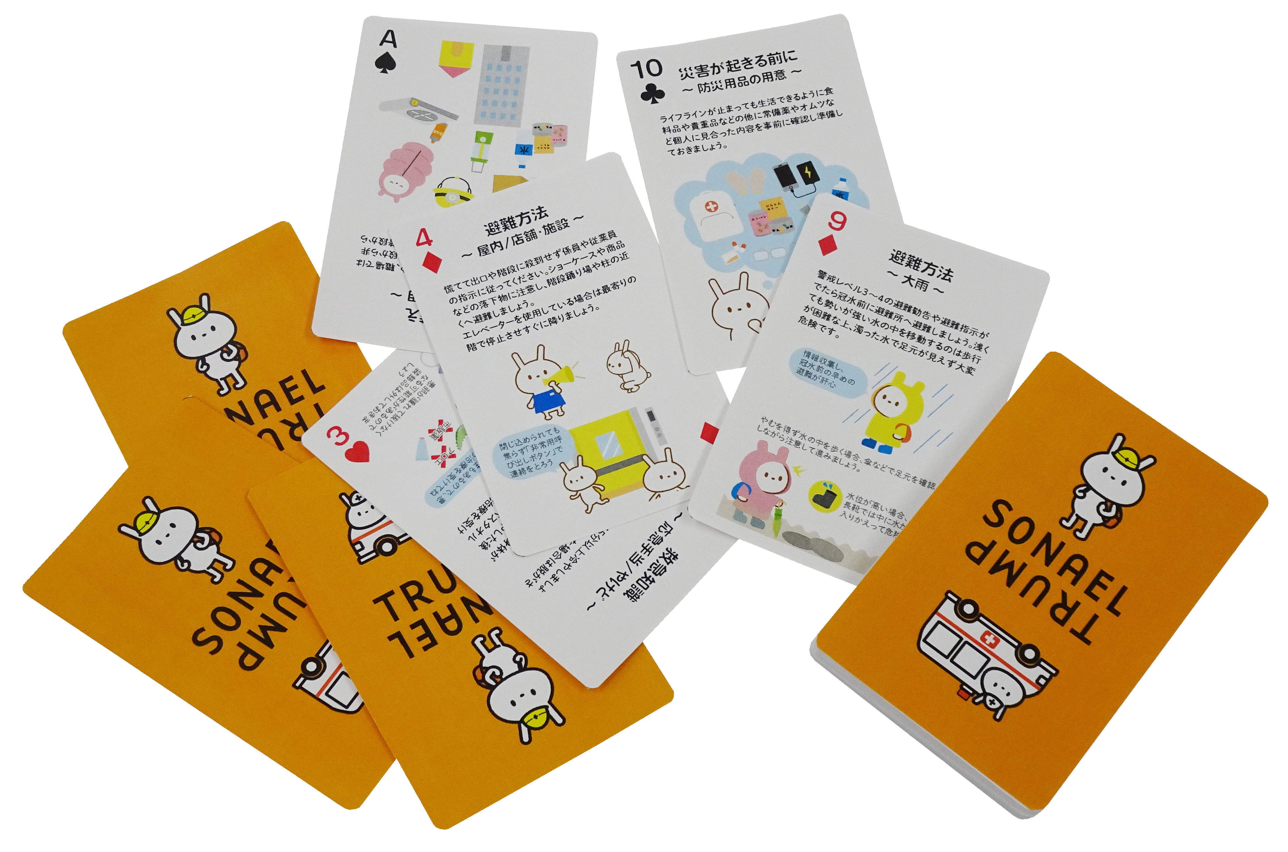 日常生活で防災を学べるトランプ。避難所での娯楽にも。