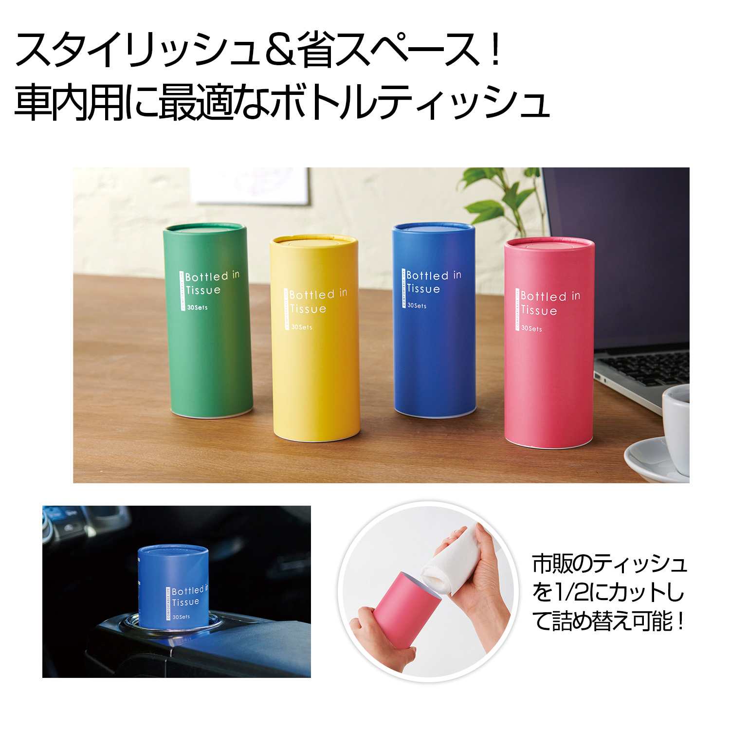 - スタイリッシュなボトルティッシュケース、